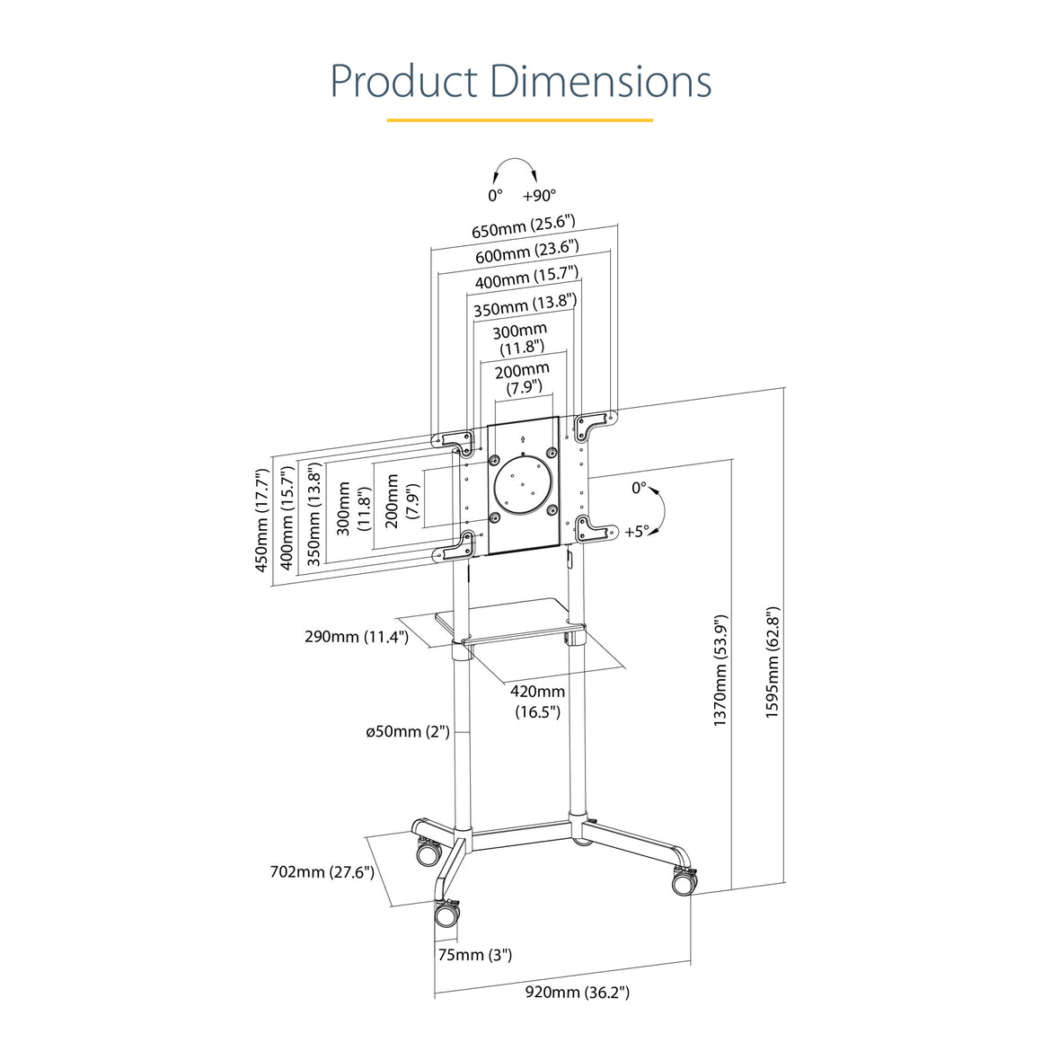 This Mobile TV Stand enables you to create a mobile media center with displays from 37" to 70" and up to 154lb in weight, making it easier to move your AV equipment across classrooms, offices, or learning environments. For better stability and safety, the mobile cart was engineered with a 0.92m x 0.70m base.