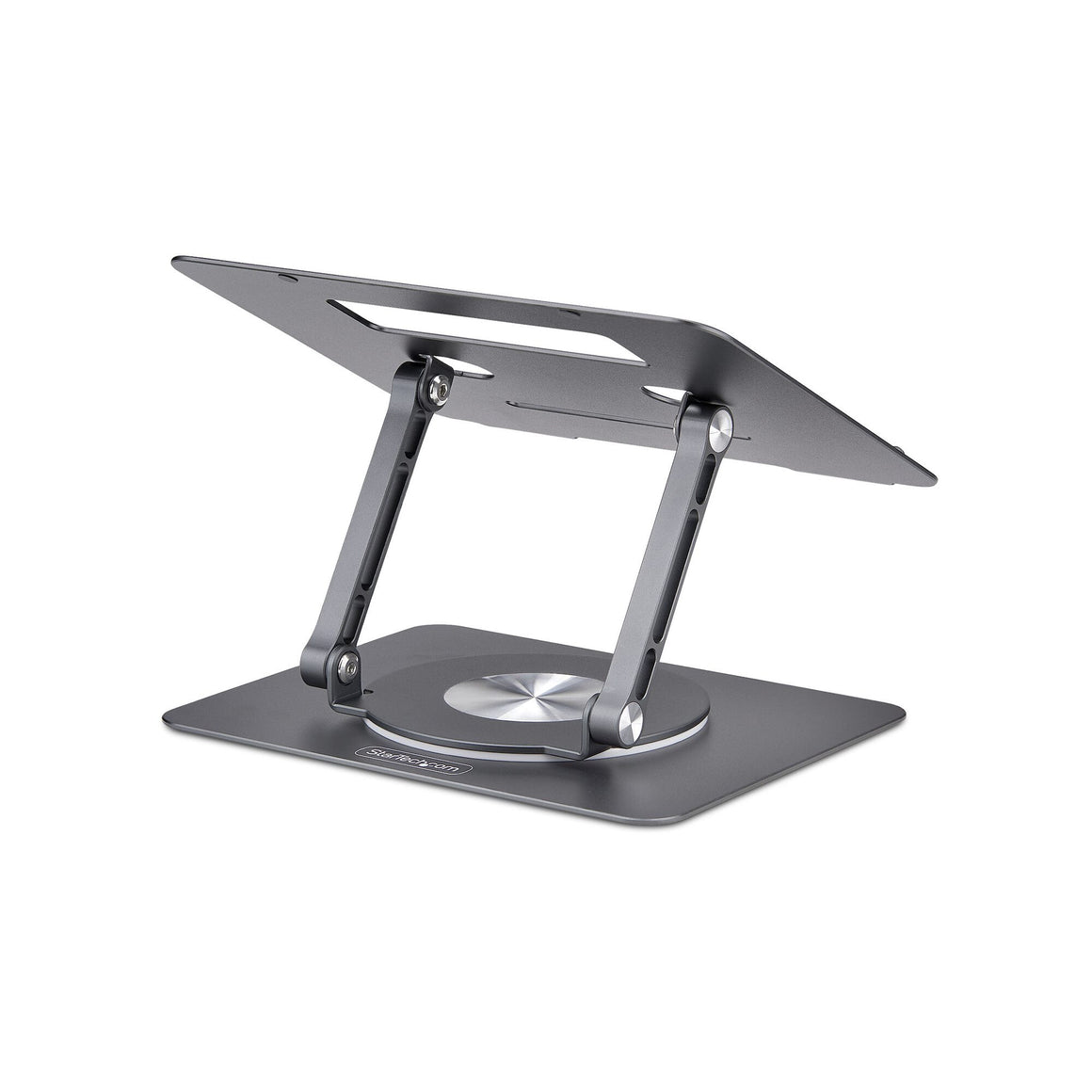 This rotating laptop stand raises laptops to a more natural viewing position. A compact and ergonomic solution for improving workspace comfort. Ideal for desks at home, in the office, or on the go.