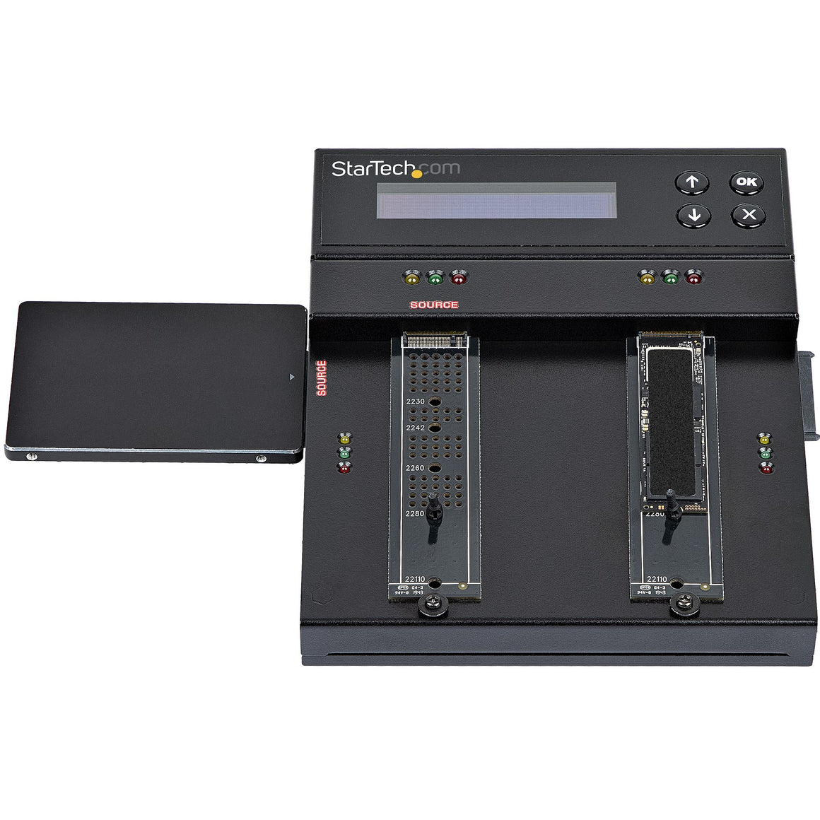 Supporting different types of drives including M.2 PCIe (M-Key), M.2 SATA (B+M-Key), and SATA 2.5/3.5 in. drives, this HDD/SSD cloner and wiper provides a versatile solution for drive cloning and deleting applications. The drive cloner enables duplication with any combination of drives, supporting duplication between M.2 (NVMe/AHCI), M.2 SATA, and 2.5/3.5" SATA drive interfaces. You can also expand the capabilities of the device to supporting IDE and mSATA drives using StarTech.com drive adapters: SATA to IDE Adapter (SAT2IDEADP) / SATA to mSATA Adapter (SAT32MSAT257) (each sold separately).