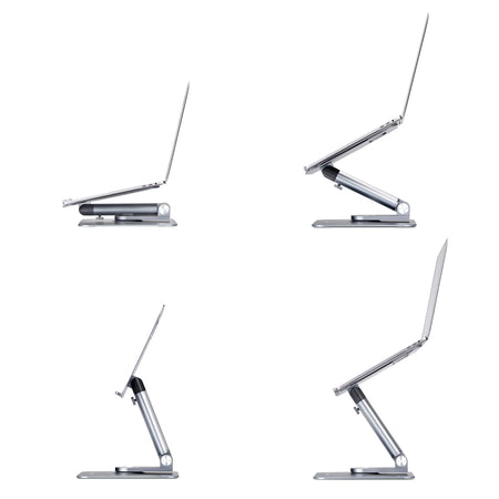 This rotating laptop stand raises laptops to a more natural viewing position. A compact and ergonomic solution for improving workspace comfort. Ideal for desks at home, in the office, or on the go.