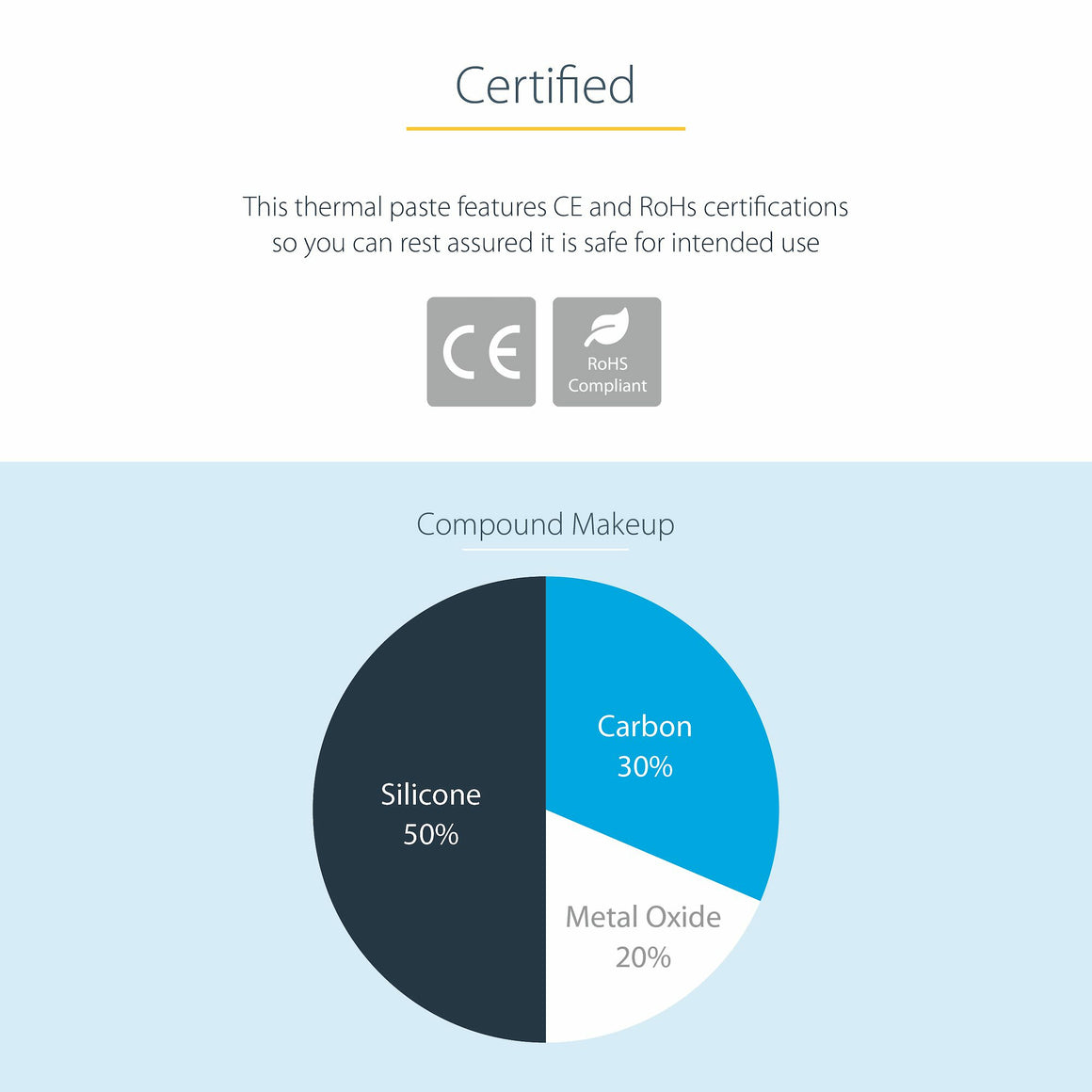 This thermal paste works with a heat sink to improve heat dissipation from integrated computer chips such as CPUs. The thermal paste features CE and RoHS certifications so you can rest assured it's safe for its intended use.