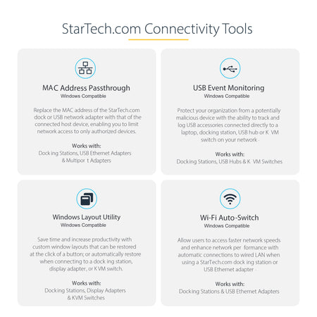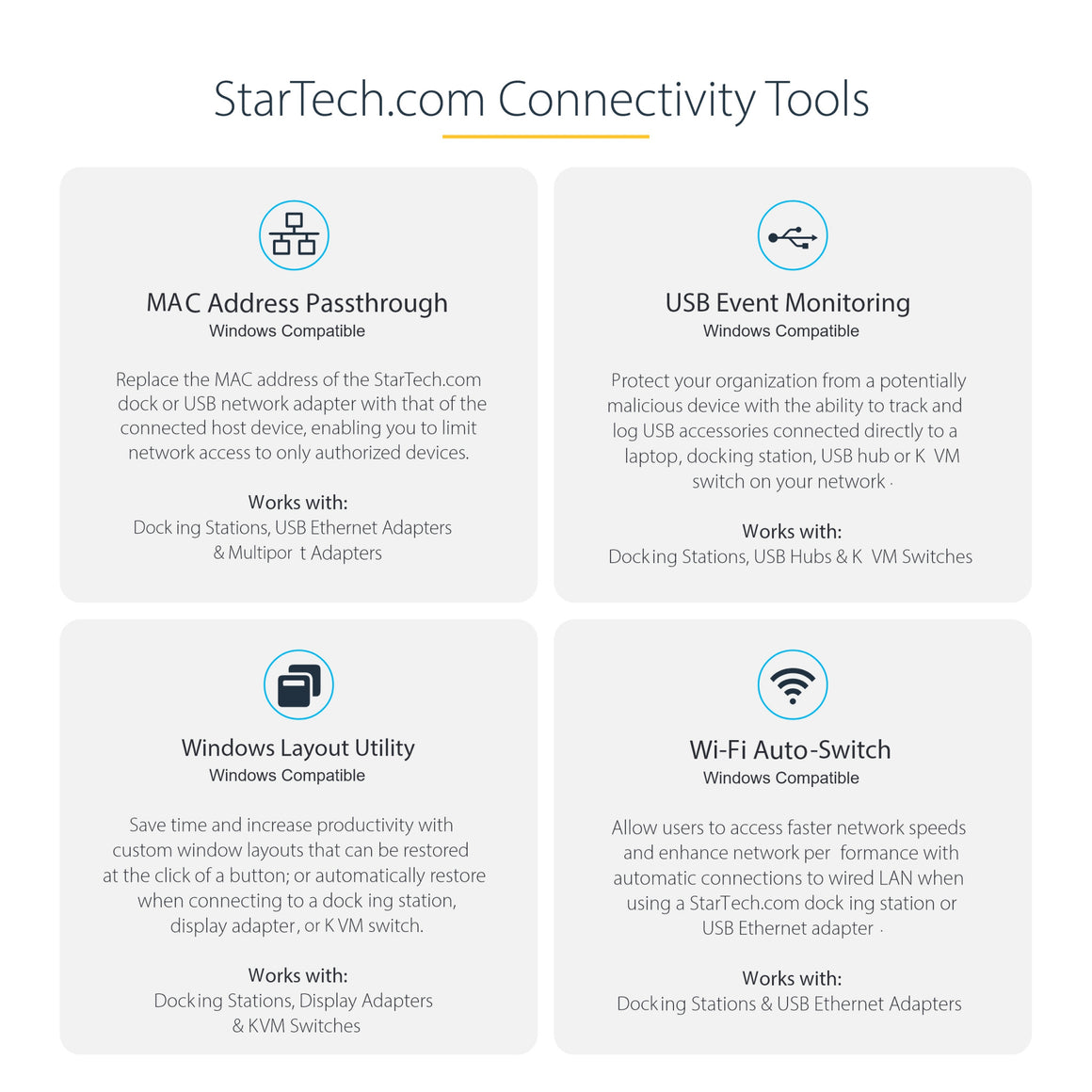Developed to improve performance and security, StarTech.com Connectivity Tools is the only software suite on the market that works with a wide range of IT connectivity accessories. The software suite includes: