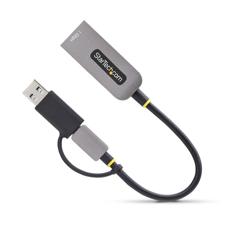 StarTech.com USB-C to Ethernet Adapter with USB-A Dongle, 10/100/1000Mbps, USB 3.0 to Gigabit Ethernet Network Adapter, 6in/15cm Attached Cable, USB GbE Adapter