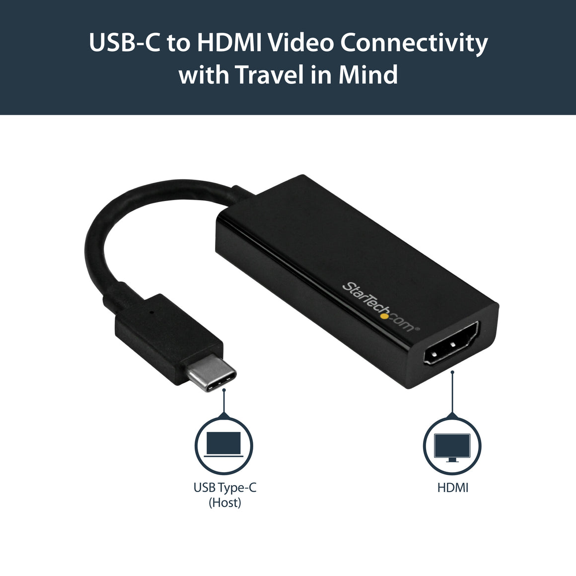 This USB-C™ to HDMI® adapter lets you output HDMI video and audio from a USB Type-C™ device, such as a USB-C equipped MacBook, with support for Ultra HD 4K at 60 Hz. This adapter works with USB-C devices that pass a DisplayPort video signal, and it's also compatible with Thunderbolt™ 3 ports.