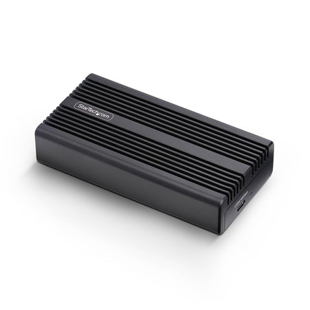 The USB4 NVMe Enclosure's compact footprint fits comfortably in a technician's toolkit or laptop bag. The rugged aluminum housing not only helps with heat dissipation but also protects the SSD from physical damage during transport or deployment in demanding environments.