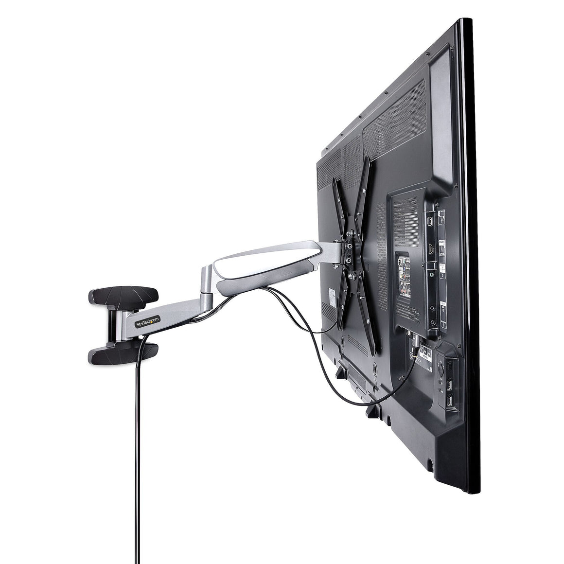 The robust steel and aluminum design safely and securely supports the TV. The arm assembly features built-in cable management and a wall mount cover for a an organized and visually appealing installation.