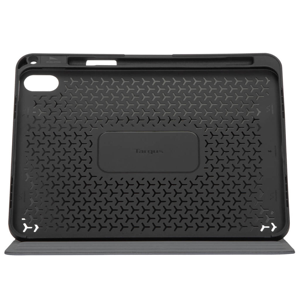 The Targus® Click-In™ Case for iPad®(10th gen.) 10.9-inch provides strong, military-grade drop protection (up to 4 feet/1.2 metres)* in an ultra-slim design. Engineered for durability without adding weight, this case features a flexible tray with wrap-around bezel and reinforced corners, structured front and back covers, and a soft lining inside that safeguards your device screen from scratches.