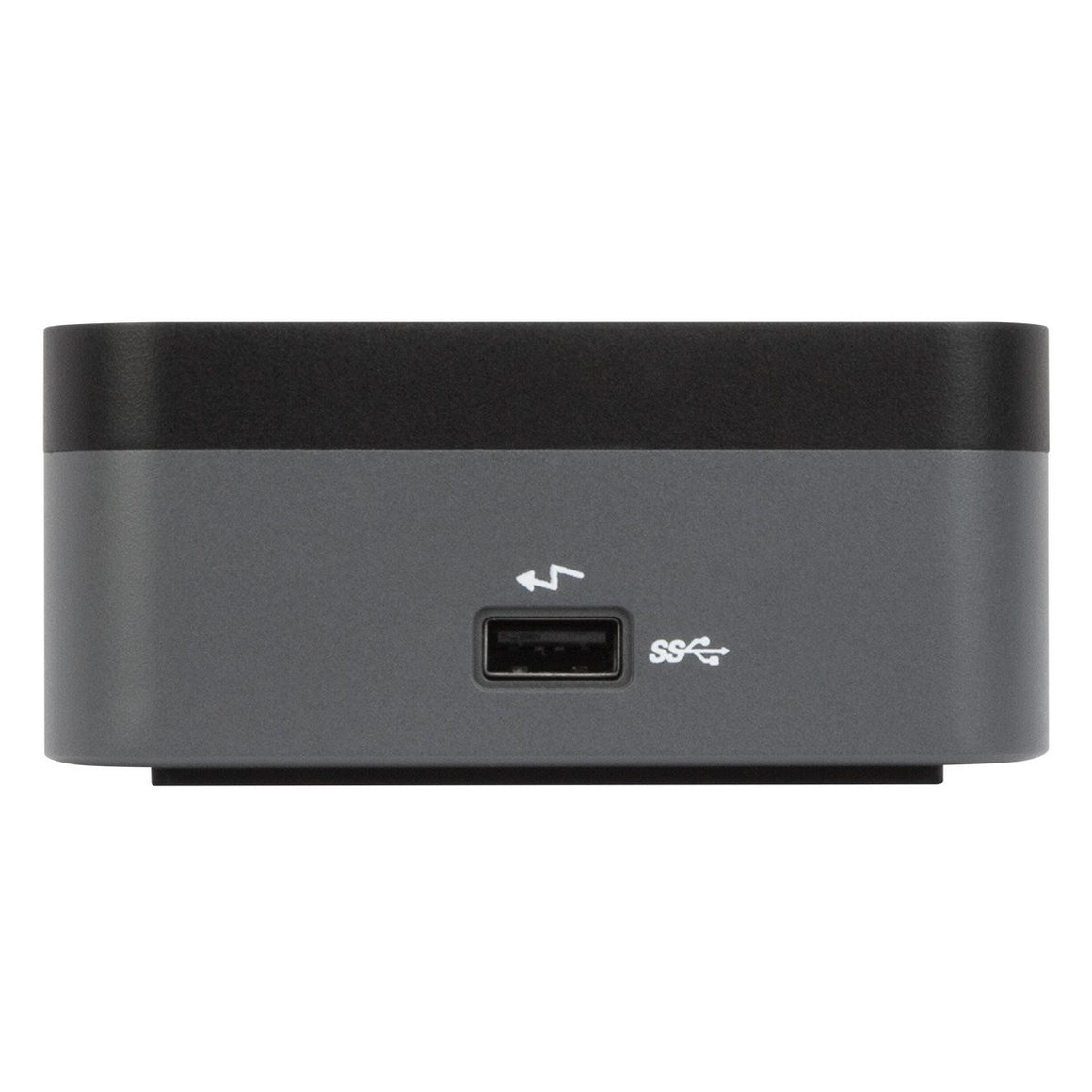 This sleek dock helps reduce clutter by providing the ease of a single connection for key peripherals like your mouse, keyboard and more. Its rubberised, padded bottom protects against scratches, while the VESA bracket mounting provision allows for use of the Targus VESA Mount Bracket (ACX003GLZ – sold separately) to hold your dock behind your display for even greater space savings. Your most advanced configurations become easy with compatibility across virtually any laptop and most standard peripherals including Thunderbolt 3™, Display Port Alt-Mode, and USB 3.0, 3.1 and Type-C devices. Charging tips and a USB-C to USB-A adapter included to make this dock compatible with a variety of major laptop brands.