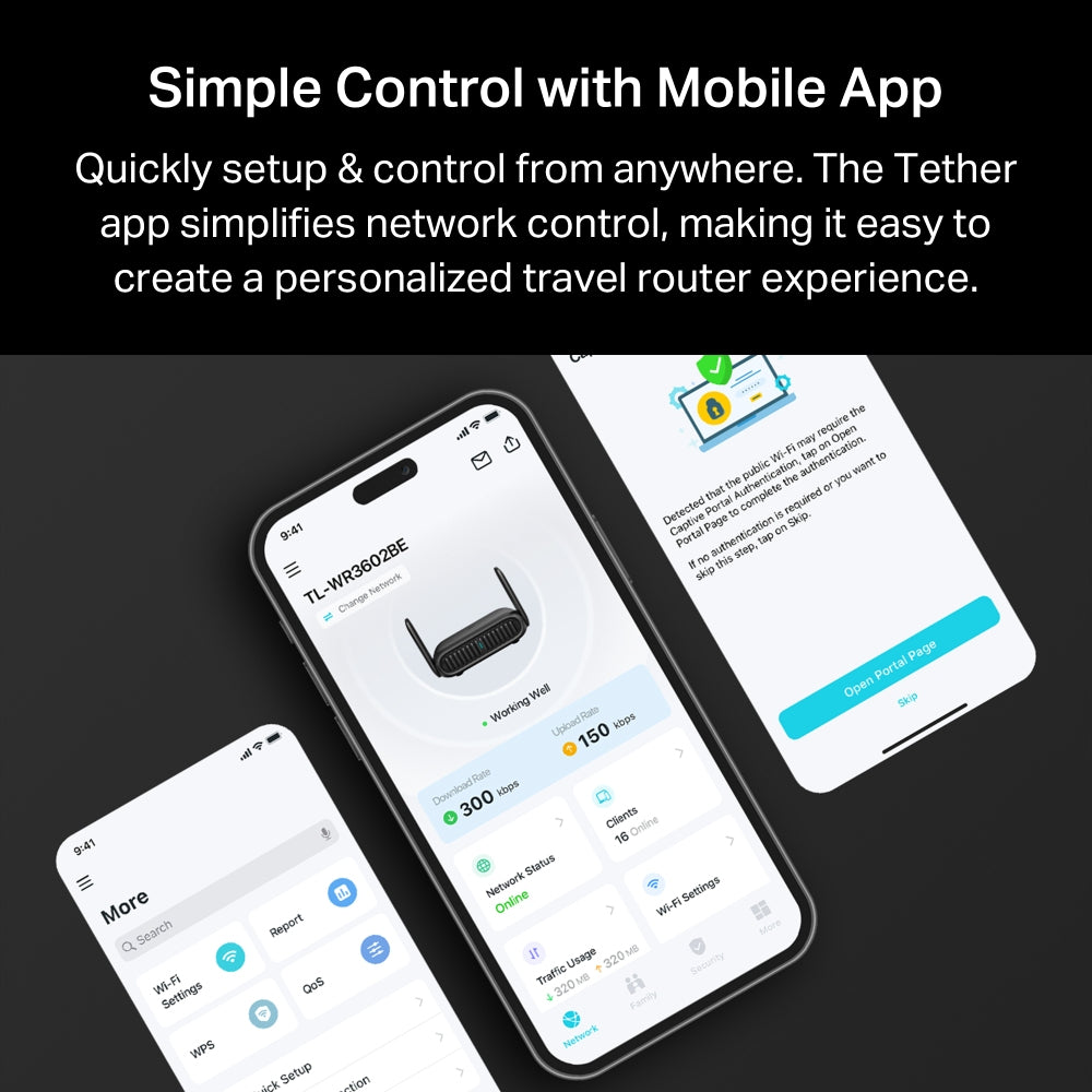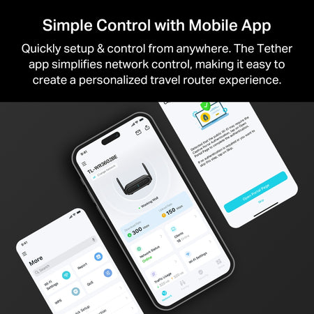 Quickly setup & control from anywhere. The Tether app simplifies network control, making it easy to create a personalized travel router experience.