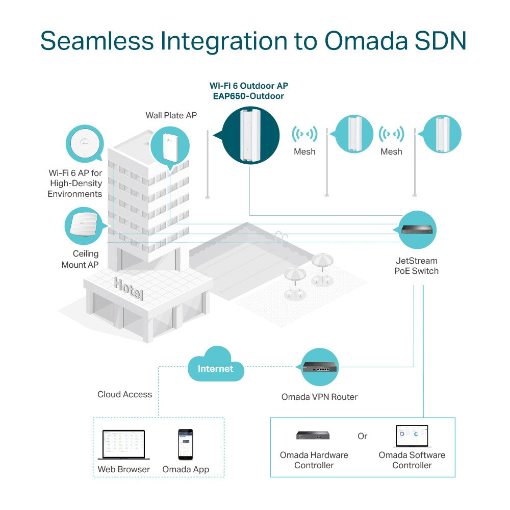 Flexible Deployment with Omada Mesh and PoE Support
