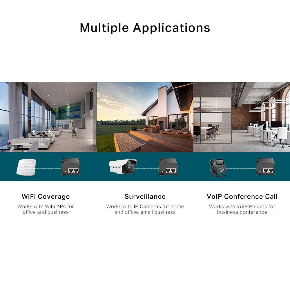 The PoE+ Injector POE160S (TL-POE160S) fully complies with IEEE 802.3af/at standards, and can work with all IEEE 802.3af/at PoE compliant PDs (Powered Devices) or PoE Receiver Adapters, such as TP-Link's POE10R (TL-POE10R), or other equivalent product, to expand your network to where there are no power line or outlet, where you wish to fix device such as AP, IP Camera or IP Phone, etc.