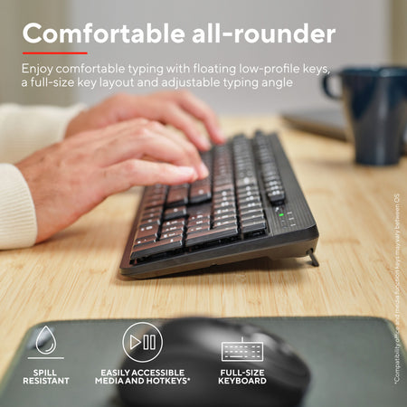 Noisy typing is out, silent typing is in. This wireless keyboard has silent keys for a soft keystroke so you can easily type without disturbing yourself and those around you. Ready to enjoy your most productive workdays yet?