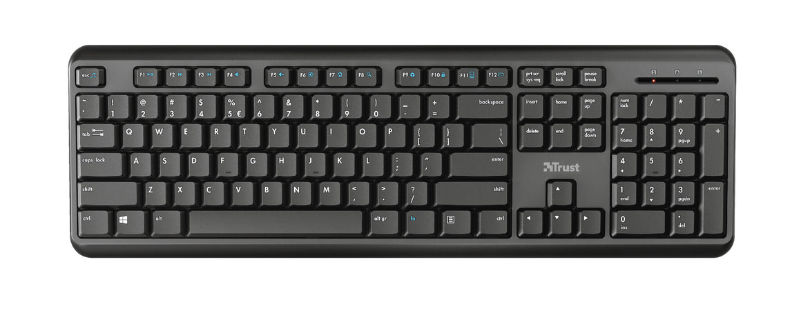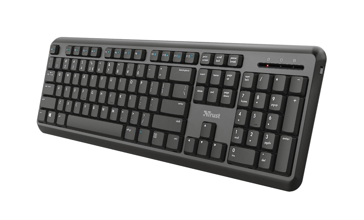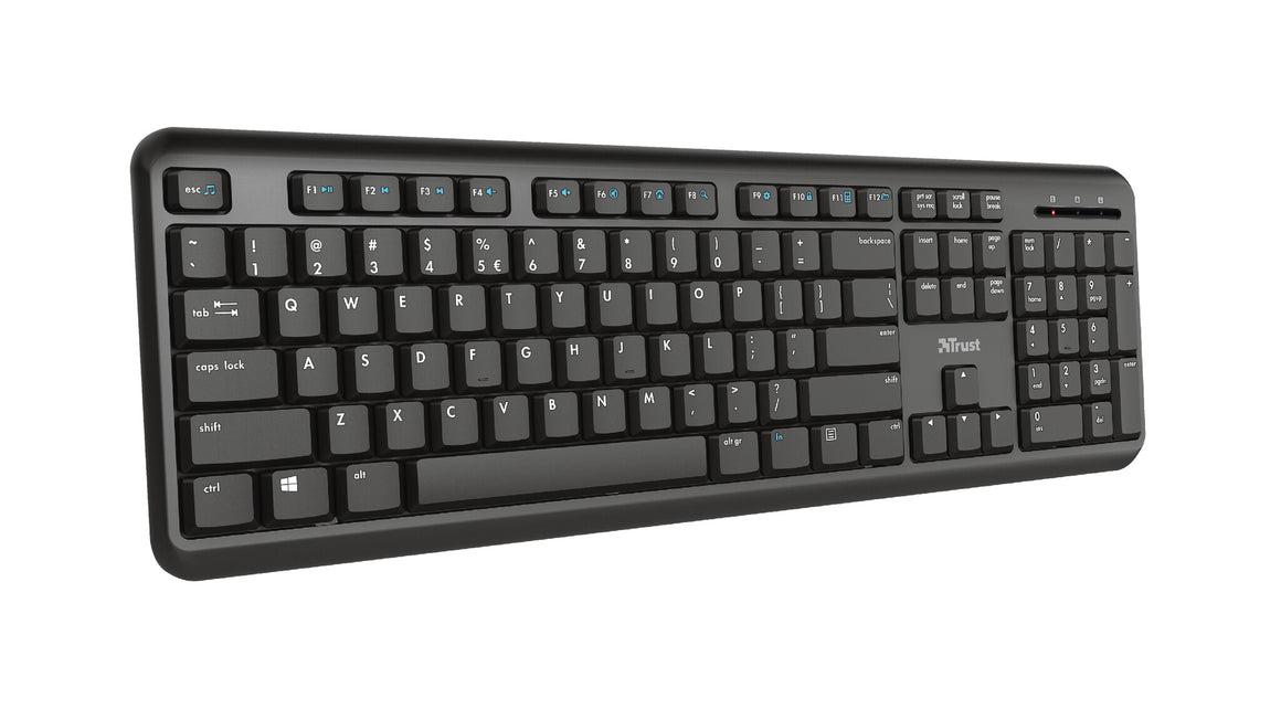 The Trust Ody Silent Wireless Keyboard is designed to make working more comfortable. Fitted with silent keys, you won’t disturb your family or colleagues when typing, the keyboard is spill resistant, and you can enjoy maximum working flexibility thanks to the wireless design.