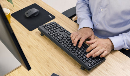 The wireless keyboard comes with a USB receiver, which can simply be plugged into a laptop’s or desktop’s free USB port so you can get to work straight away. With a 10-meter wireless range, the keyboard can control devices from a distance, such as a PC or laptop on the other side of a meeting room. After working, simply flick the off/on switch to turn off the keyboard and save on energy.