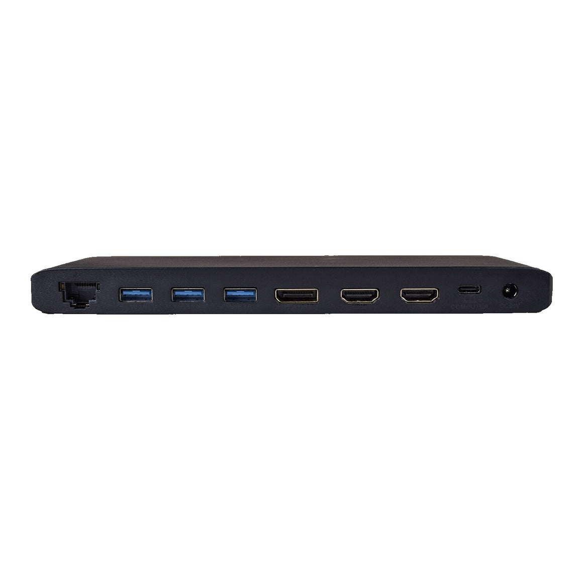 The USB-C DOCKUCPT3D USB-C Alt Mode Triple Display Docking Station from V7 adds up to 3 displays, four USB ports, Audio, SD/Micro SD Memory Cards and Gigabit Ethernet network connectivity to your USB-C enabled computer while charging at the same time. It features two HDMI ports and one DisplayPort outputs that can be used to extend or mirror your device for multitasking productivity. It supports up to two 4K displays or up to three 1920 x 1080 (1080P) displays. The power supply is included and it provides up to 100 Watts of USB-C Charging to your computer at the same time as providing all the extra connectivity. It is compatible with DisplayPort Alt mode enabled devices. It includes a K-Lock interface for security. This solution provides robust high performance connectivity to extend and enhance your workstation productivity with a 2 year warranty.